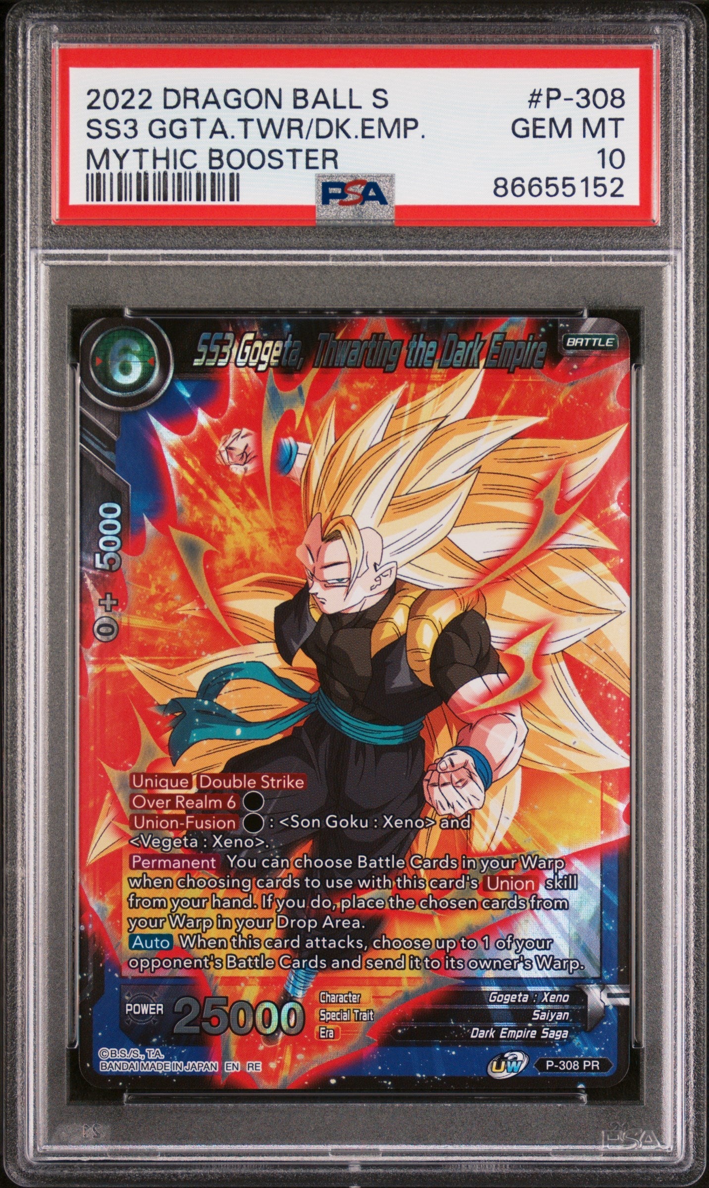 2022 DRAGON BALL SUPER MYTHIC BOOSTER SS3 GOGETA, THWRT/EMP #P-308 - PSA 10