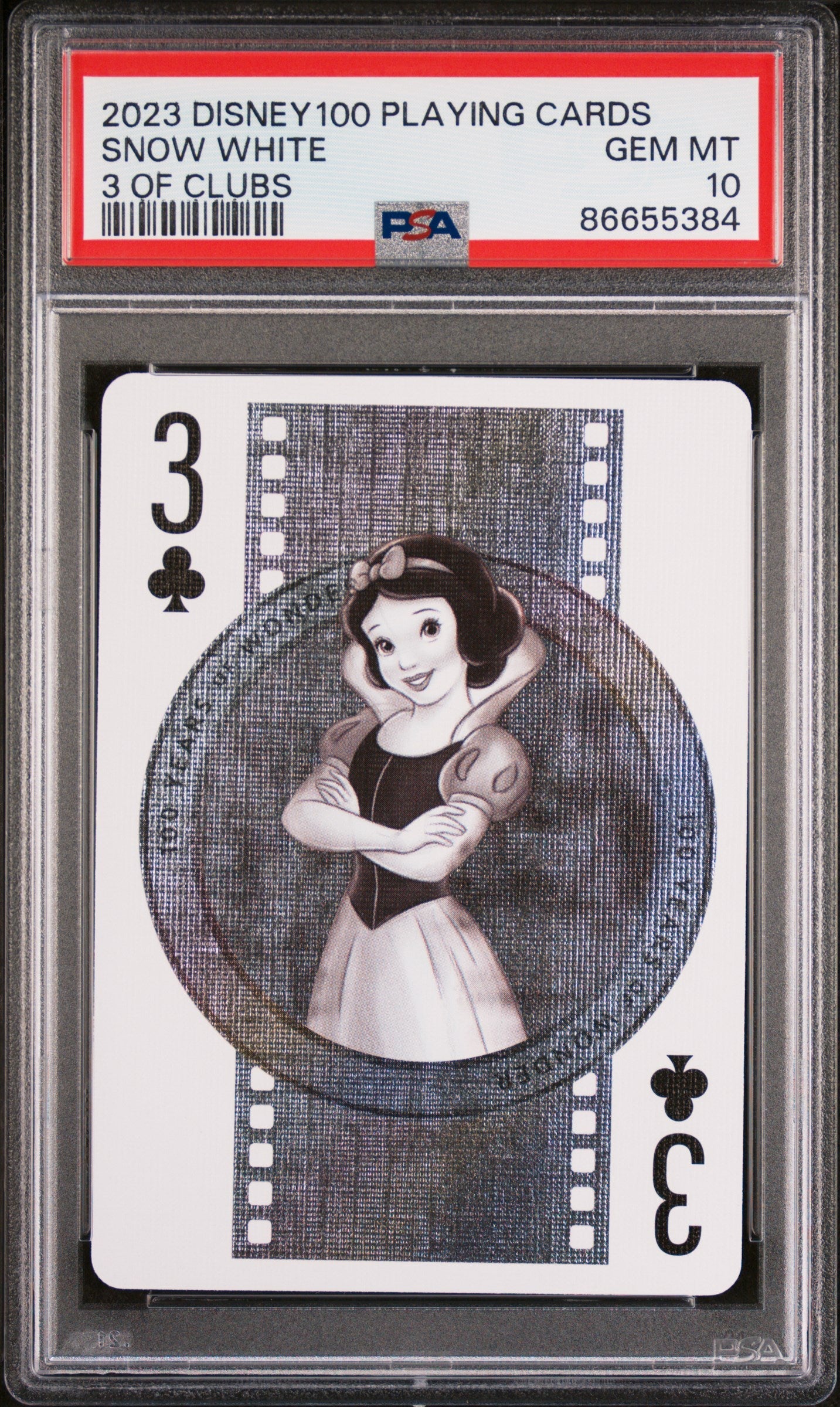 2023 DISNEY 100 PLAYING CARDS SNOW WHITE 3 OF CLUBS PSA 10