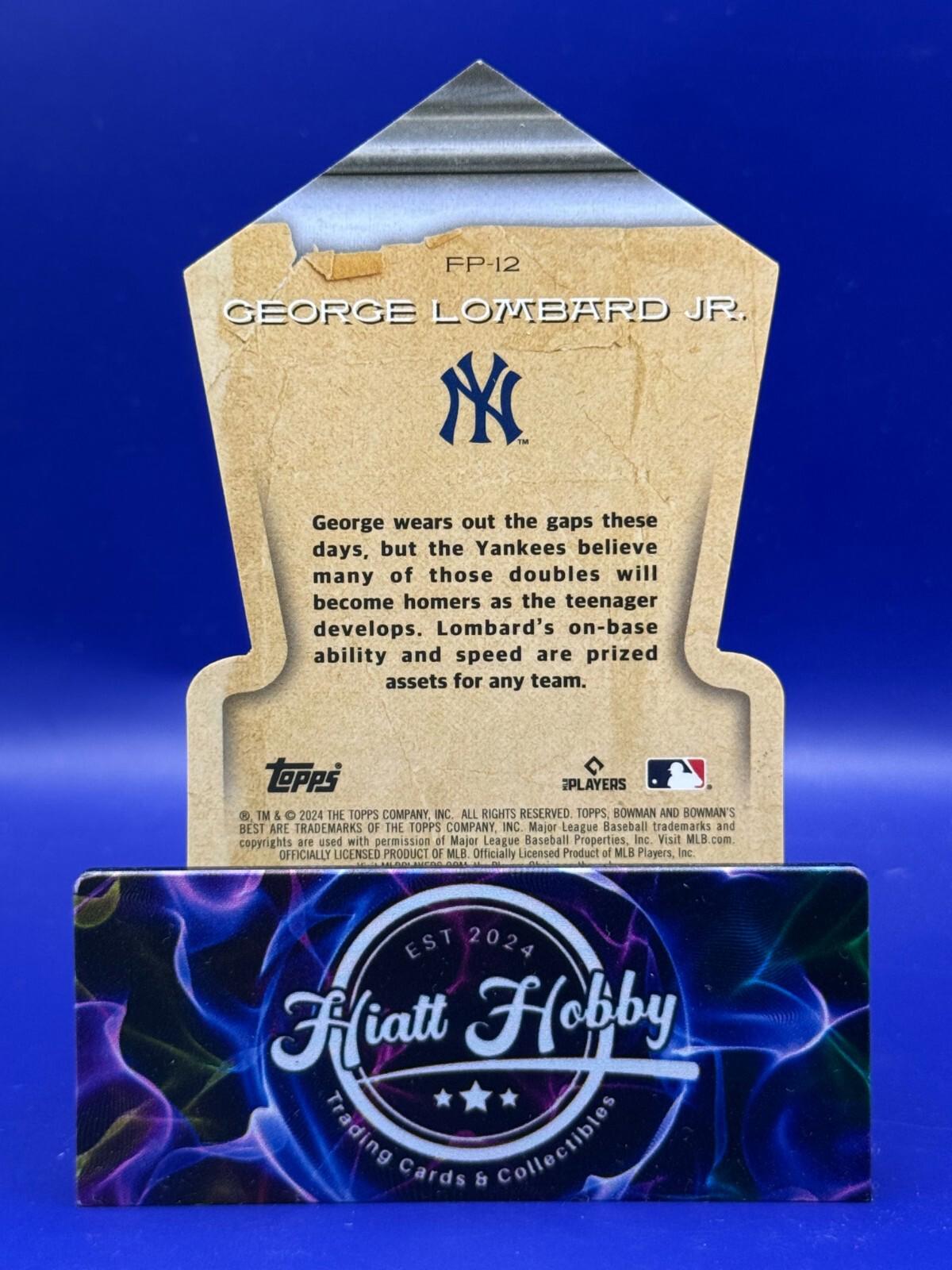 Up for sale is a 2024 Bowman's Best Baseball card featuring George Lombard Jr of the New York Yankees as part of the Fabled Phenom insert set. This sports trading card is manufactured by Topps and is a refractor variety, making it a great addition to any baseball card collection. The card is in near mint or better condition and is autograph authenticated by Topps. It is a rookie card with features such as an insert and parallel/variety. The card is in English and is a standard size, perfect for display or storage. Don't miss out on the opportunity to own this MLB World Series event/tournament card!