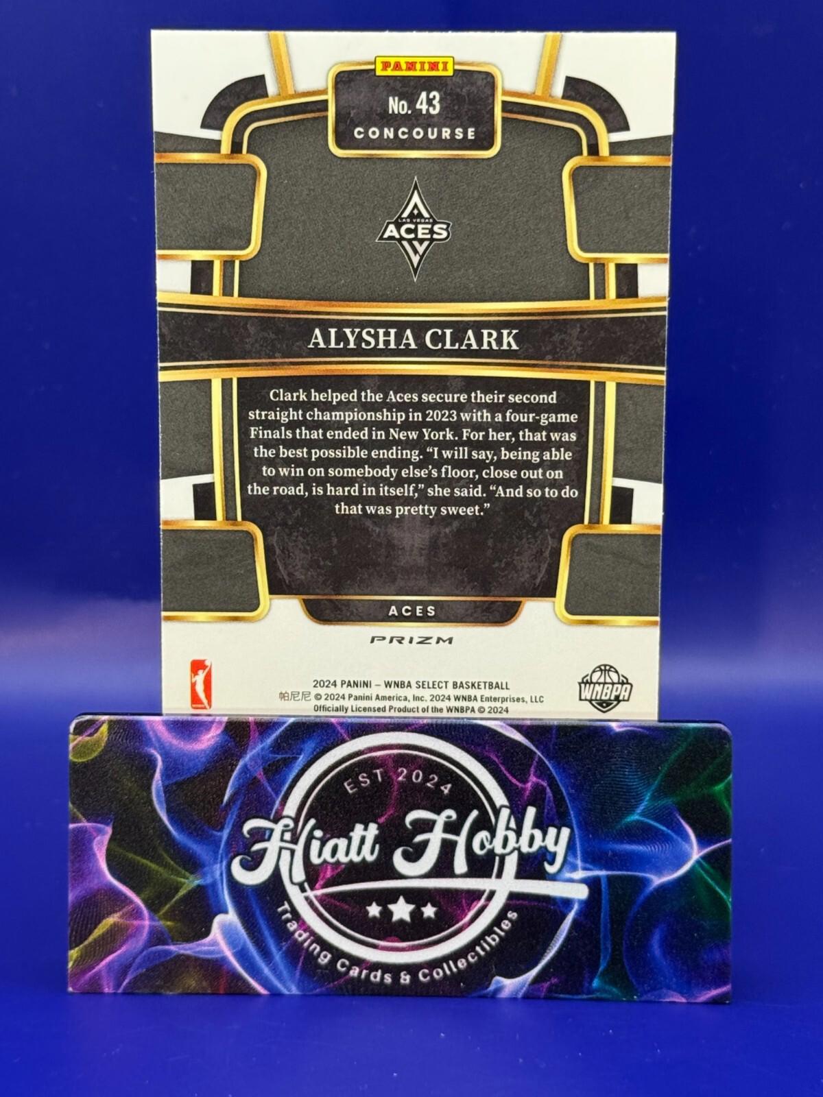 Capture a piece of basketball history with the 2024 Panini Select WNBA Concourse #43 featuring the talented Alysha Clark of the Las Vegas Aces. This card shines with the stunning Holo Silver parallel variety, a must-have for collectors and fans alike. With the WNBA Finals event prominently featured, it's a celebration of athletic prowess and a tribute to the fierce competition of the Women's National Basketball Association.Expertly manufactured in the United States, this card is a testament to the craftsmanship of Panini, a trusted name in sports memorabilia. The standard-sized card is presented in English and does not include an autograph, preserving the sleek design of the 2024 Panini Select WNBA set. Add this piece of sports history to your collection and showcase your passion for the game.