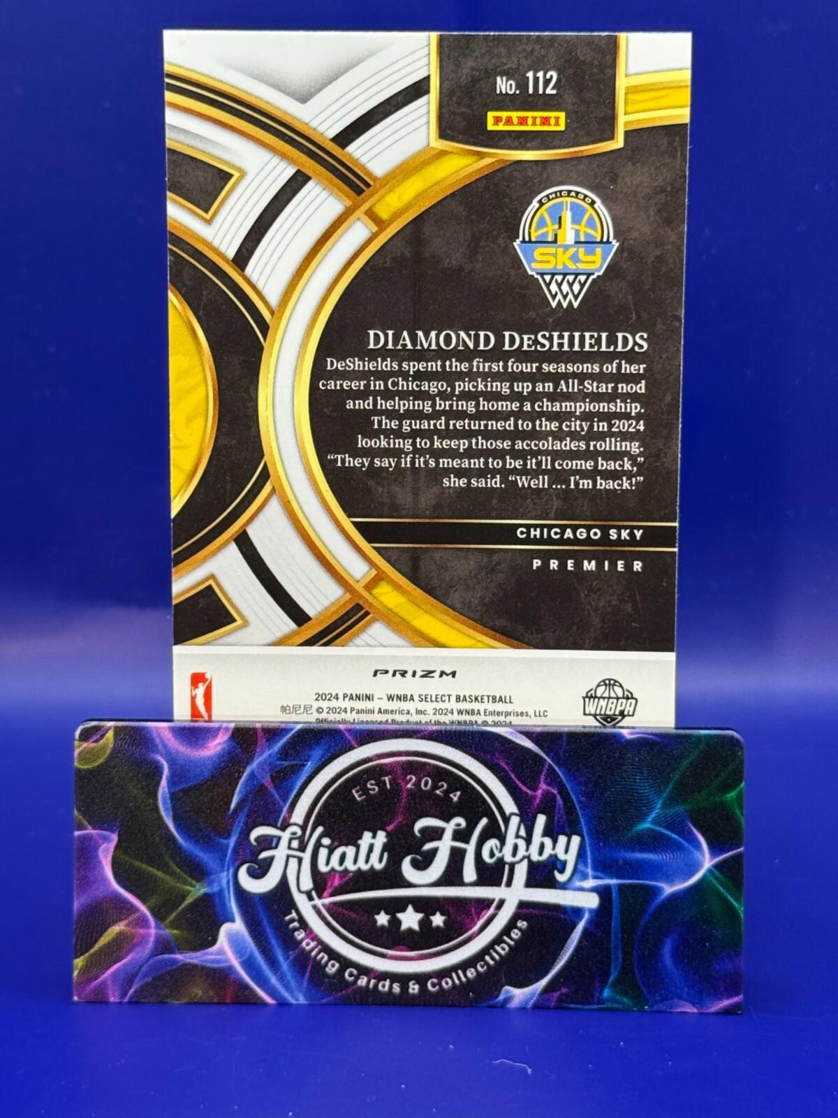Elevate your basketball card collection with the 2024 Panini Select WNBA Premier Level #112 featuring the talented Diamond DeShields of the Chicago Sky. This card showcases the Holo Silver parallel variety, adding a mesmerizing shine that catches the eye of every collector. As a standout piece from the 2024 season set, it reflects the excitement and energy of the WNBA Finals.Crafted with care by Panini, a trusted name in sports memorabilia, this card is a testament to the prestige of the Women's National Basketball Association. It's a standard-sized gem produced in the United States and presented in English, without an autograph, to maintain the card's authenticity and appeal to discerning collectors.