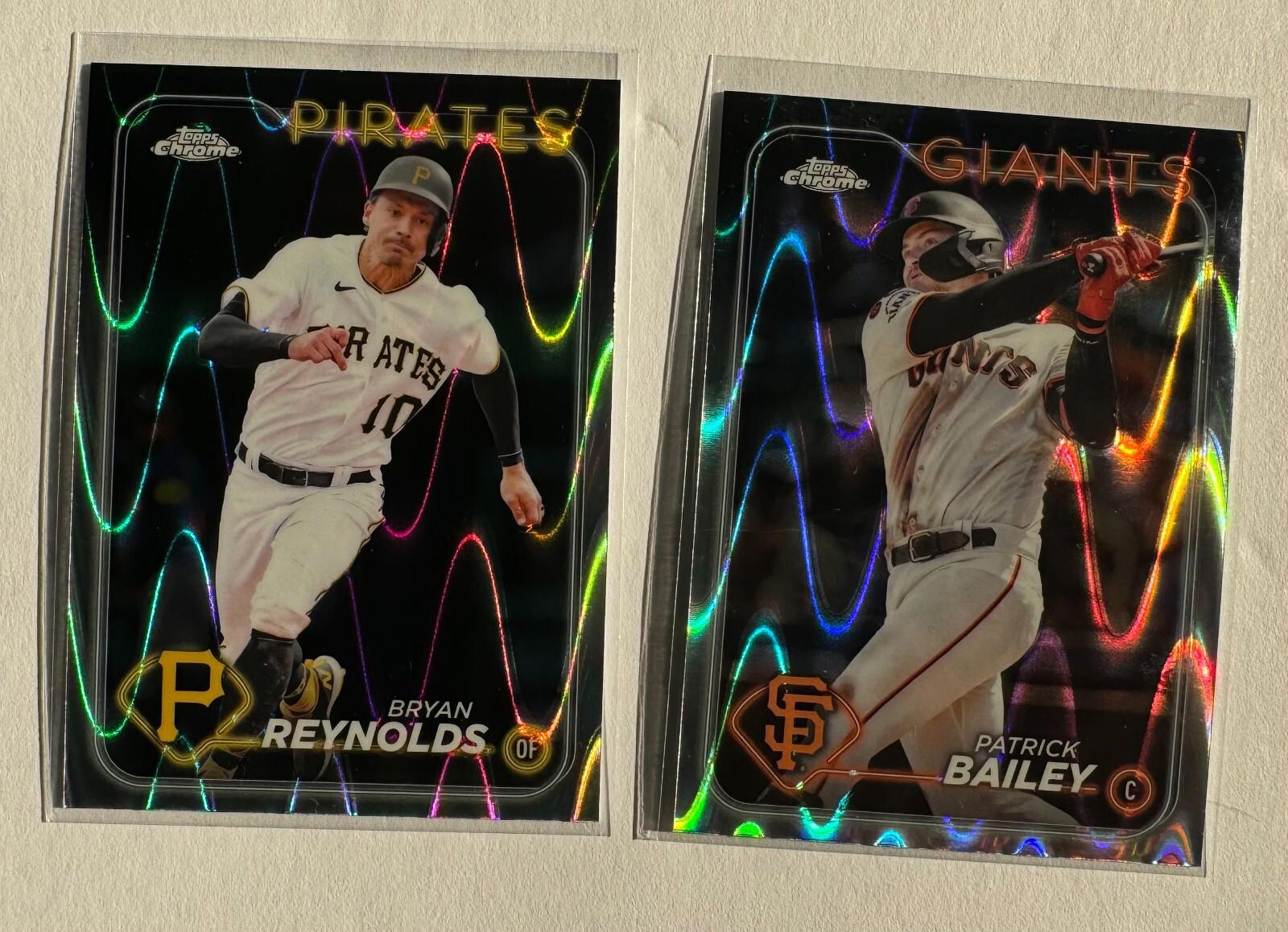 This listing is for a pair of 2024 Topps Chrome Baseball Wave Refractor cards.