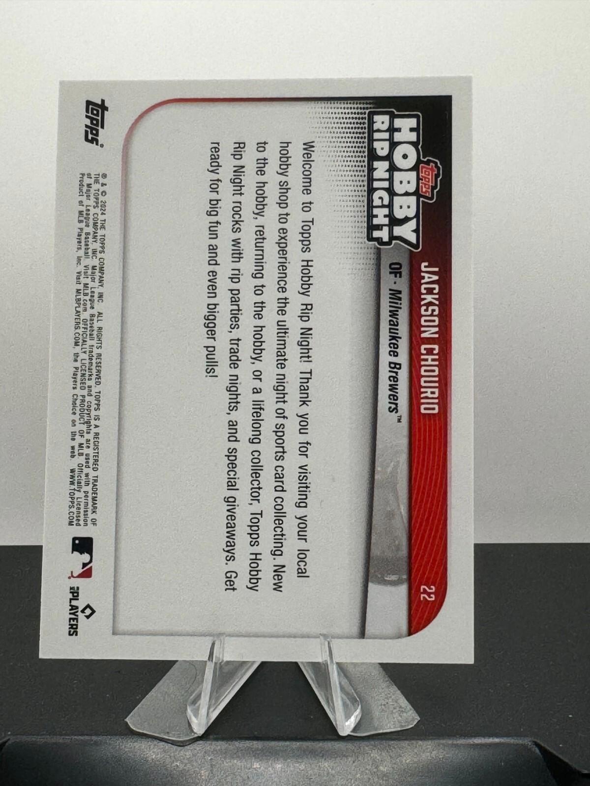 2024 Topps Hobby Rip. Night Jackson Chourio #22 - Orange SP (RC)