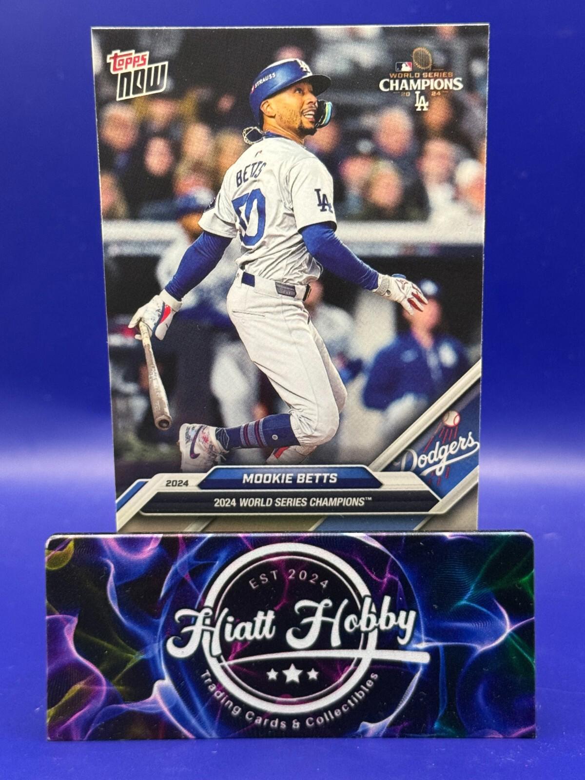 Capture a piece of baseball history with the 2024 Topps Now World Series card featuring Mookie Betts of the Los Angeles Dodgers. Card #WS-9 from the 2024 season commemorates the MLB championship, showcasing Betts' prowess on the field. This limited edition collectible is a must-have for fans and card enthusiasts alike.The card is part of the renowned Topps Now series, known for its base set design and association with a specific event, in this case, the MLB World Series. It's printed in the United States on standard-sized, 20 pt. thick card stock, ensuring a durable and quality addition to any collection. Please Read: SHIPPING SCHEDULE We make every attempt to ship your item out quickly.  Our standard shipping schedule is Tuesday, Thursday, and Saturday drops at the post office and we include all items that have been paid for up to 5PM central the day prior.  That is, all purchases that have been paid for by 5PM central on a Monday will be included in the Tuesday shipment.  If the payment is received after the 5PM deadline, it will be part of the Thursday order drop. SHIPPING DETAILS Cards and Magazines are shipped out in padded or rigid envelopes are shipped in a semi rigid card protector and a penny sleeve. Larger items are boxed up properly. We cannot control the USPS or UPS when it comes to the timely delivery of an item, their methods and handling of the item. Please DO NOT hold us responsible for the efforts of a delivery service, however, if you suspect damage to the package, please take pictures prior to opening and record the opening.  This would help with any insurance claims and reimbursements. For Orders Exceeding $20, you must select USPS Ground Advantage for shipping in order for the order to be processed. INTERNATIONAL SHIPPING We are not offering international shipping at this time. PICTURES All photos are of the item you are bidding on.  Your item will not be swapped out for a similar item. MULTIPLE PURCHASES When purchasing multiple item from us, please wait to discuss before paying.  We will combine shipping for you and try to save some money. RATINGS & FEEDBACK If you have an issue with something, please try and contact us first so that we may try and work it out. If we come to a satisfactory conclusion, please consider providing a favorable review and positive feedback. Thank you so much for any business that you do with us.