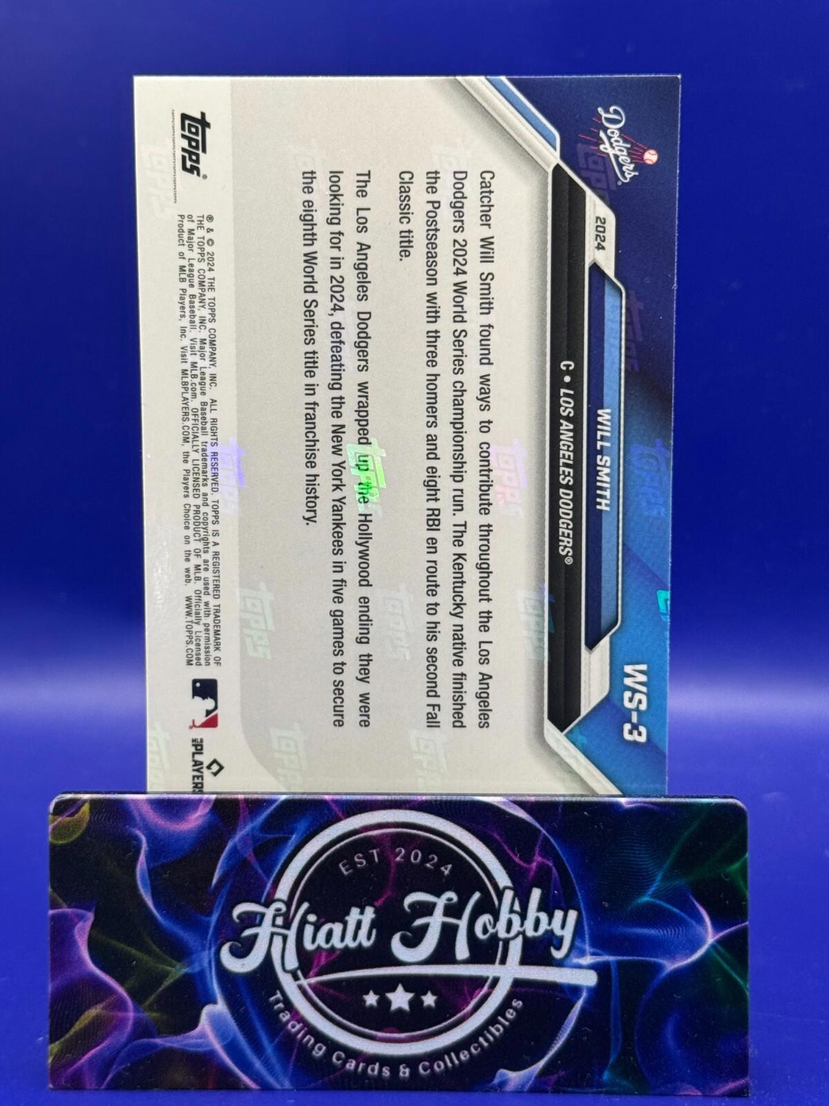 Capture the excitement of the 2024 MLB World Series with this Will Smith #WS-3 card from the Topps Now series. This limited edition card features the Los Angeles Dodgers' star player and is a must-have for baseball fans and card collectors alike. The card is printed on high-quality card stock and has a thickness of 20 Pt., making it a durable addition to any collection.The card is an original print and is not autographed. It is part of the base set and is an excellent representation of the sport. The card is in English and is manufactured in the United States. Add this card to your collection to celebrate the 2024 World Series and show your support for the Los Angeles Dodgers.