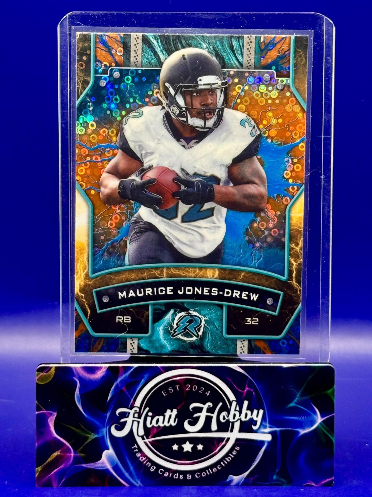 The 2024 Topps Resurgence trading card featuring Maurice Jones-Drew #47 in Blue & Orange Spark is a collectible item for fans of the National Football League (NFL) and specifically for supporters of the Jacksonville Jaguars. Manufactured by Topps, this original card is made of card stock and showcases the player in a vibrant design. While it is not autographed, it still holds value for collectors looking to add unique and rare pieces to their collection from the 2024 season.
