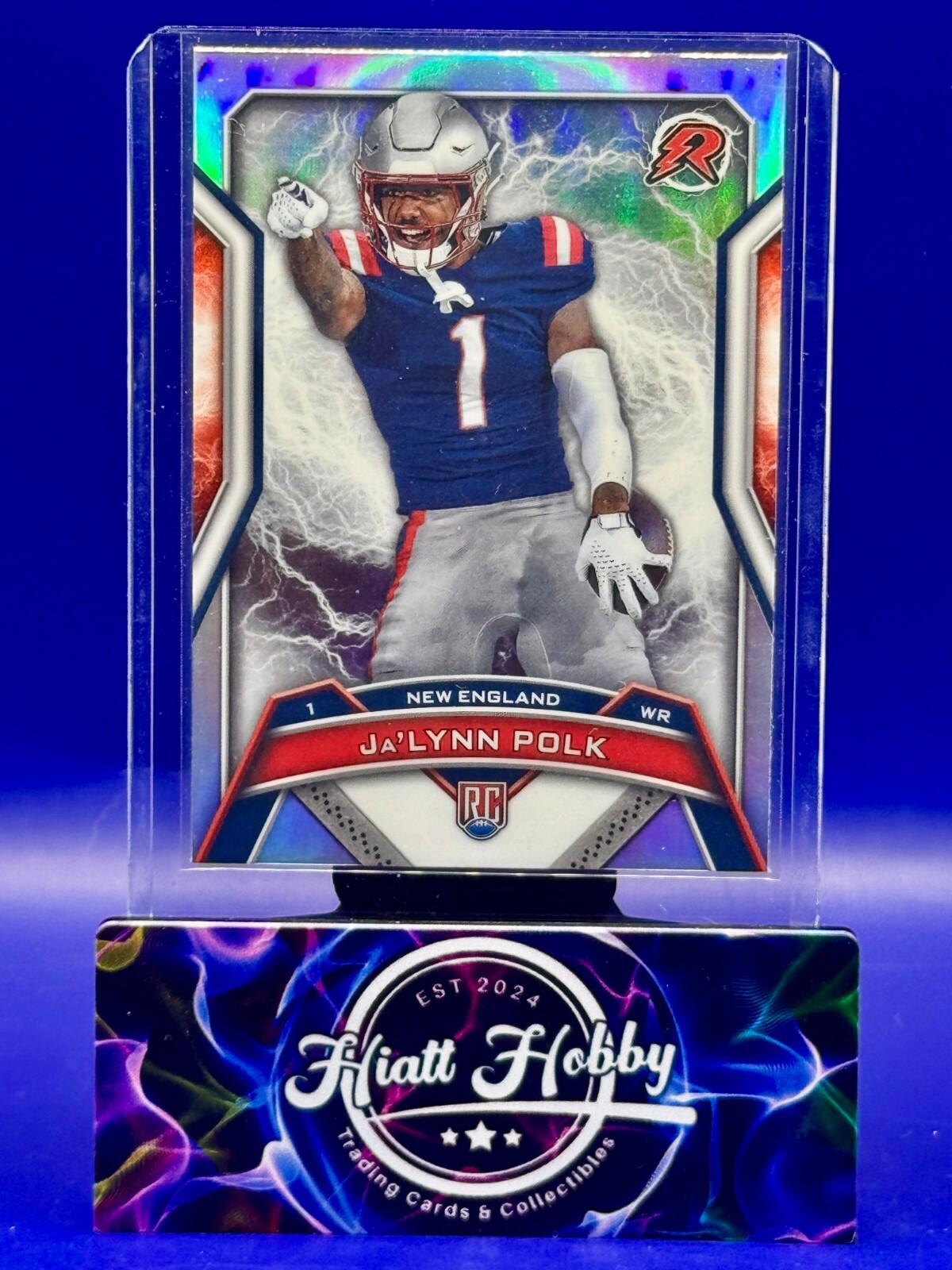 The 2024 Topps Resurgence - Rookies Ja'Lynn Polk #165 - Refractor (RC) trading card is a standard-sized collectible featuring the rookie athlete Ja'Lynn Polk from the New England Patriots. Manufactured by Topps in 2024, this original card is part of the Topps Resurgence set and is made of card stock. The refractor parallel variety adds a unique shine to the card, making it a sought-after item for football card collectors. This card celebrates a promising new talent in the NFL, perfect for fans and collectors of sports trading cards. Please Read: SHIPPING SCHEDULE We make every attempt to ship your item out quickly.  Our standard shipping schedule is Tuesday, Thursday, and Saturday drops at the post office and we include all items that have been paid for up to 5PM central the day prior.  That is, all purchases that have been paid for by 5PM central on a Monday will be included in the Tuesday shipment.  If the payment is received after the 5PM deadline, it will be part of the Thursday order drop. SHIPPING DETAILS Cards and Magazines are shipped out in padded or rigid envelopes and/or inserts to protect the item.  Individual cards are typically are shipped in a semi rigid card protector and a penny sleeve.  Combined orders will be packaged securely, but may not have a semi-rigid card protector (item will still be well protected) . Larger items are boxed up properly. We cannot control the USPS or UPS when it comes to the timely delivery of an item, their methods and handling of the item. Please DO NOT hold us responsible for the efforts of a delivery service, however, if you suspect damage to the package, please take pictures prior to opening and record the opening.  This would help with any insurance claims and reimbursements. We offer eBay Standard Envelope Shipping for orders at or below $20.  If your order exceeds $20, you must select USPS Ground Advantage for shipping in order for the order to be processed. SHIPPING INSURANCE Any Items that exceed $100 will include additional handling charges.  This fee is to cover the cost of insuring the item during transit. INTERNATIONAL SHIPPING We are pleased to now offer international shipping! PICTURES All photos are of the item you are bidding on when bidding on single item listings and will not be swapped out for other versions. Items that have multiple quantities will be in similar or better condition. PICTURES For listings that do not have variations, the card depicted in the photo is the card you will receive.  In cases that the listing has variations, the card may not be the same, but each card is inspected to ensure the same level of condition. MULTIPLE PURCHASES When purchasing multiple item from us, please wait to discuss before paying.  We will combine shipping for you and try to save some money. RATINGS & FEEDBACK If you have an issue with something, please try and contact us first so that we may try and work it out. If we come to a satisfactory conclusion, please consider providing a favorable review and positive feedback. Thank you so much for any business that you do with us.