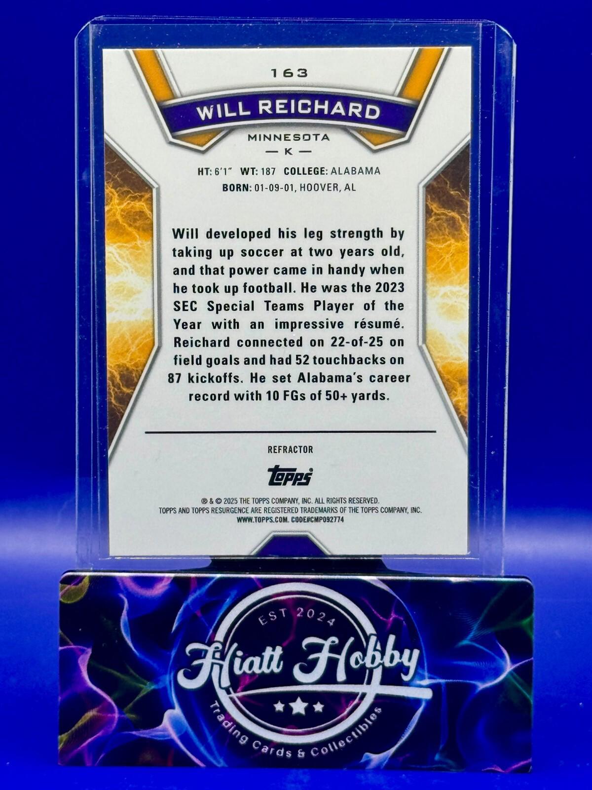 2024 Topps Resurgence - Rookies Will Reichard #163 - Refractor (RC)