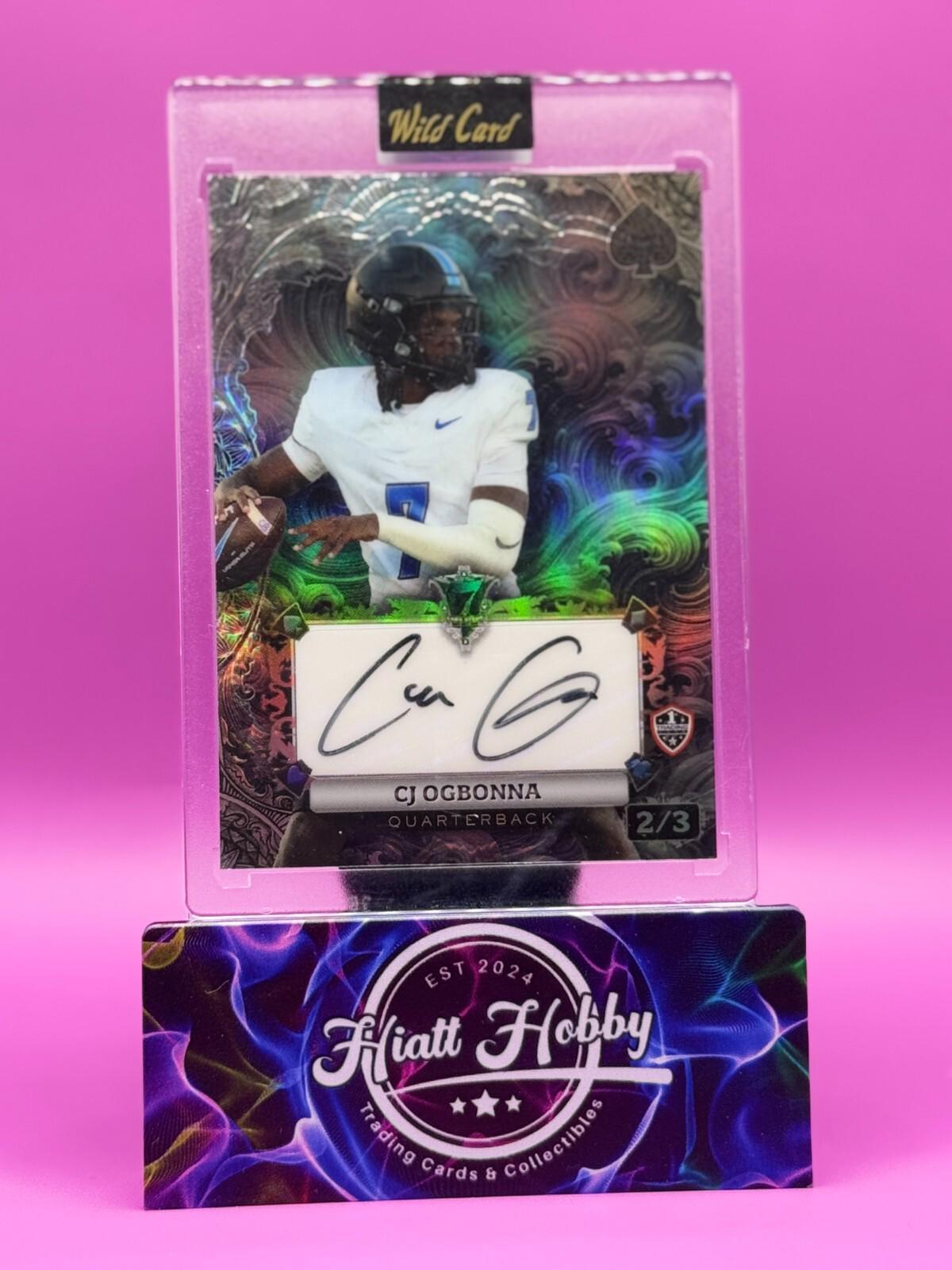 Elevate your sports card collection with the 2024 Wild Card 7-Card Stud High Stakes CJ Ogbonna card, numbered AS7CW-CO. This collectible card showcases the Buffalo Bulls football star in a striking silver rainbow parallel, complemented by an authentic autograph from CJ Ogbonna himself. The card is part of a limited edition run, as indicated by its serial numbering, ensuring its rarity and value to collectors.Crafted in the United States, this card is a testament to quality and prestige, featuring standard card size dimensions and printed in English. It's a treasured find for fans of the NCAA, especially those who follow the football prowess of CJ Ogbonna. With its rookie status and short print features, this sports trading card is a noteworthy piece for enthusiasts and supporters of the sport.