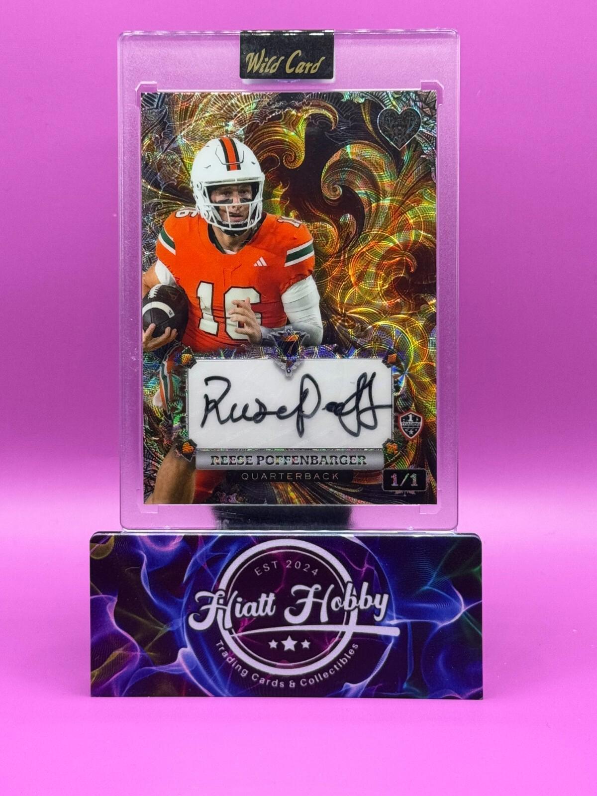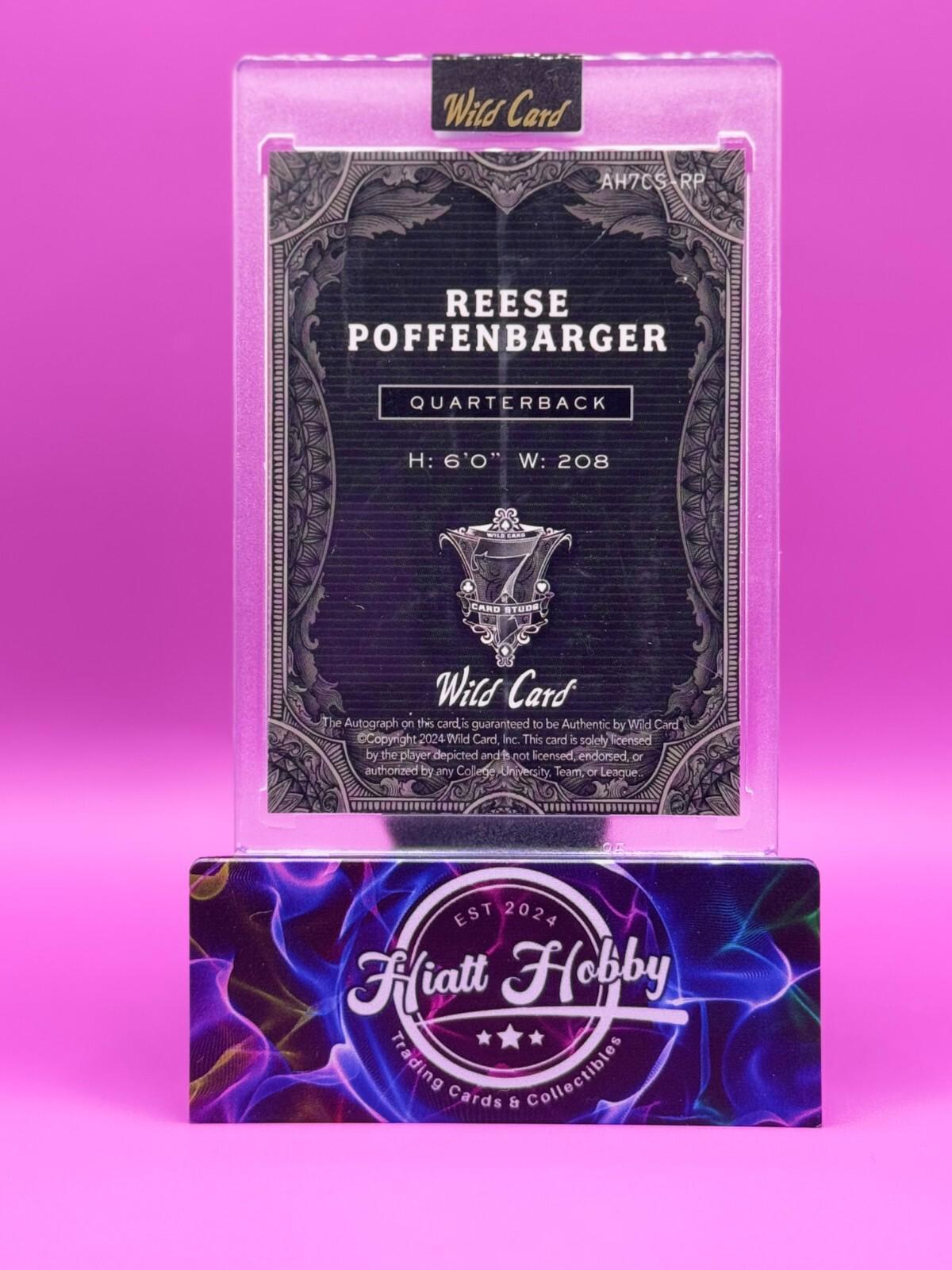 Elevate your sports card collection with the 2024 Wild Card 7-Card Stud High Stakes Reese Poffenbarger Gold Kaleidoscope autographed card. As a one-of-a-kind treasure, this card is both a rookie card and a one-of-a-kind piece, featuring the North Texas Mean Green football player in his collegiate prime. This card boasts a gold kaleidoscope parallel/variety, adding a unique visual appeal to this collectible.This card is also a short print, with a limited print run of just one, making it a rare addition to any collection. The autograph is authenticated with a label or sticker and the card is serial numbered AH7CS-RP. This card is an excellent representation of Reese Poffenbarger's early career and a must-have for any fan of the National Collegiate Athletic Association (NCAA) football. Please Read: SHIPPING NOTE This Item will be placed in a semi-rigid card holder for shipping when eBay Standard Envelope is the chosen shipping method. If you would like the card sent in the holder shown in the photographs, please select ground advantage or better. SCHEDULE We make every attempt to ship your item out quickly.  Our standard shipping schedule is Tuesday, Thursday, and Saturday drops at the post office and we include all items that have been paid for up to 5PM central the day prior.  That is, all purchases that have been paid for by 5PM central on a Monday will be included in the Tuesday shipment.  If the payment is received after the 5PM deadline, it will be part of the Thursday order drop. SHIPPING DETAILS Cards and Magazines are shipped out in padded or rigid envelopes are shipped in a semi rigid card protector and a penny sleeve. Larger items are boxed up properly. We cannot control the USPS or UPS when it comes to the timely delivery of an item, their methods and handling of the item. Please DO NOT hold us responsible for the efforts of a delivery service, however, if you suspect damage to the package, please take pictures prior to opening and record the opening.  This would help with any insurance claims and reimbursements. For Orders Exceeding $20, you must select USPS Ground Advantage for shipping in order for the order to be processed. INTERNATIONAL SHIPPING We are not offering international shipping at this time. PICTURES All photos are of the item you are bidding on.  Your item will not be swapped out for a similar item. MULTIPLE PURCHASES When purchasing multiple item from us, please wait to discuss before paying.  We will combine shipping for you and try to save some money. RATINGS & FEEDBACK If you have an issue with something, please try and contact us first so that we may try and work it out. If we come to a satisfactory conclusion, please consider providing a favorable review and positive feedback. Thank you so much for any business that you do with us.
