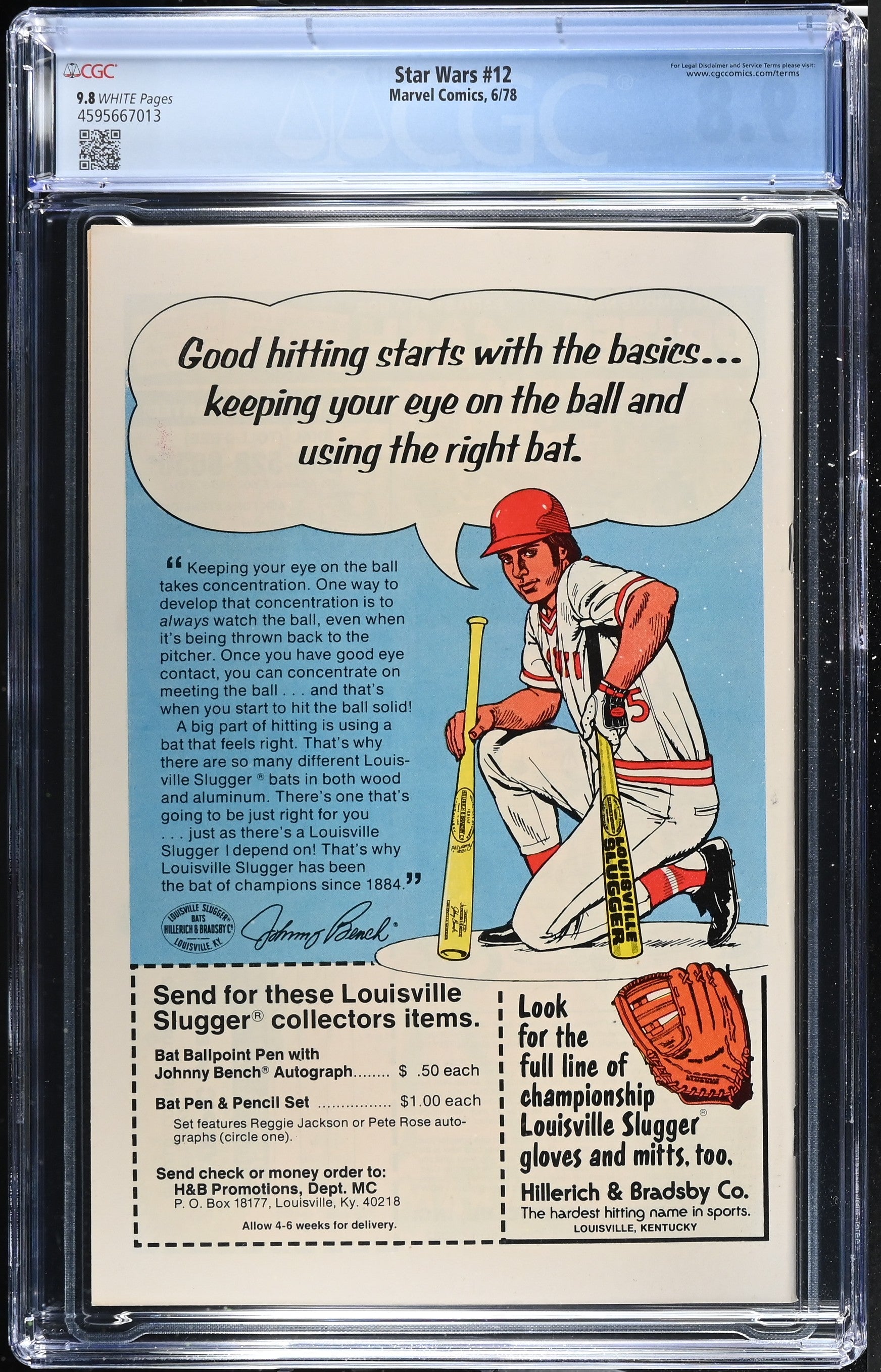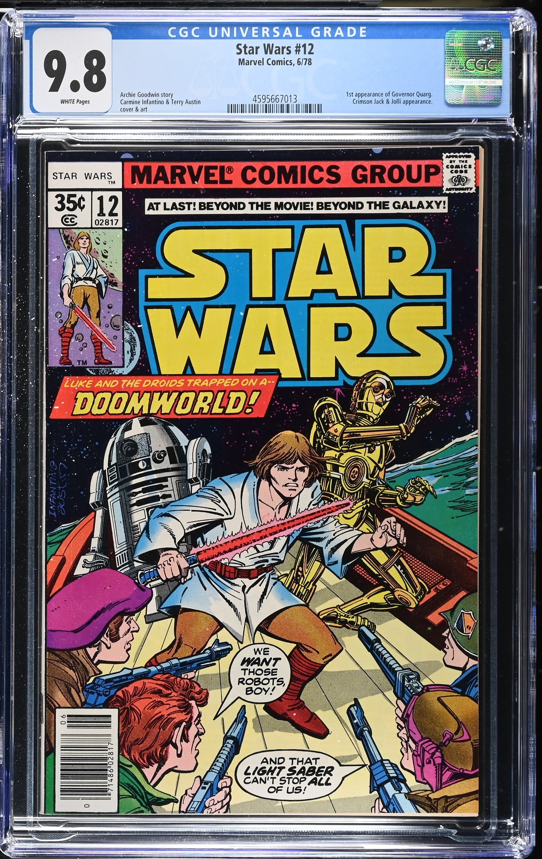 Star Wars #12 from 6/78 offers a glimpse into the era's iconic storytelling. Featuring 1st appearance of governor quarg., crimson jack & jolli appearance., this issue is a must-have for collectors. Add this CGC 9.8 graded comic to your collection today!