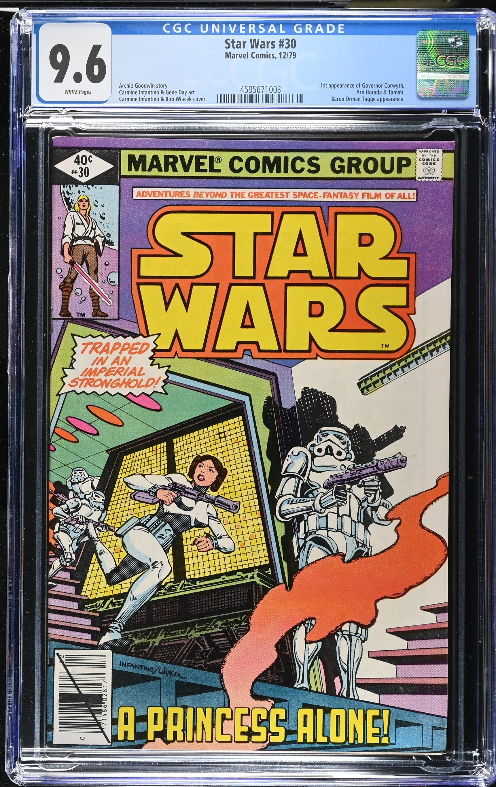 Star Wars #30 from 12/79 offers a glimpse into the era's iconic storytelling. Featuring 1st appearance of governor corwyth,, arn horada & tammi., baron orman tagge appearance., this issue is a must-have for collectors. Add this CGC 9.6 graded comic to your collection today!