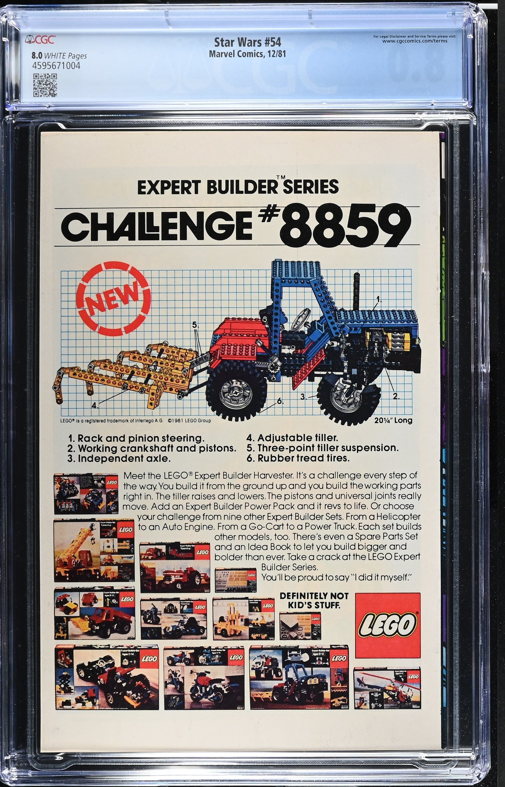 Star Wars #54 from 12/81 offers a glimpse into the era's iconic storytelling. Featuring aron, sk'ar, lady alisande,, keral longknife, jain havero, & delois appearance., this issue is a must-have for collectors. Add this CGC 8 graded comic to your collection today!