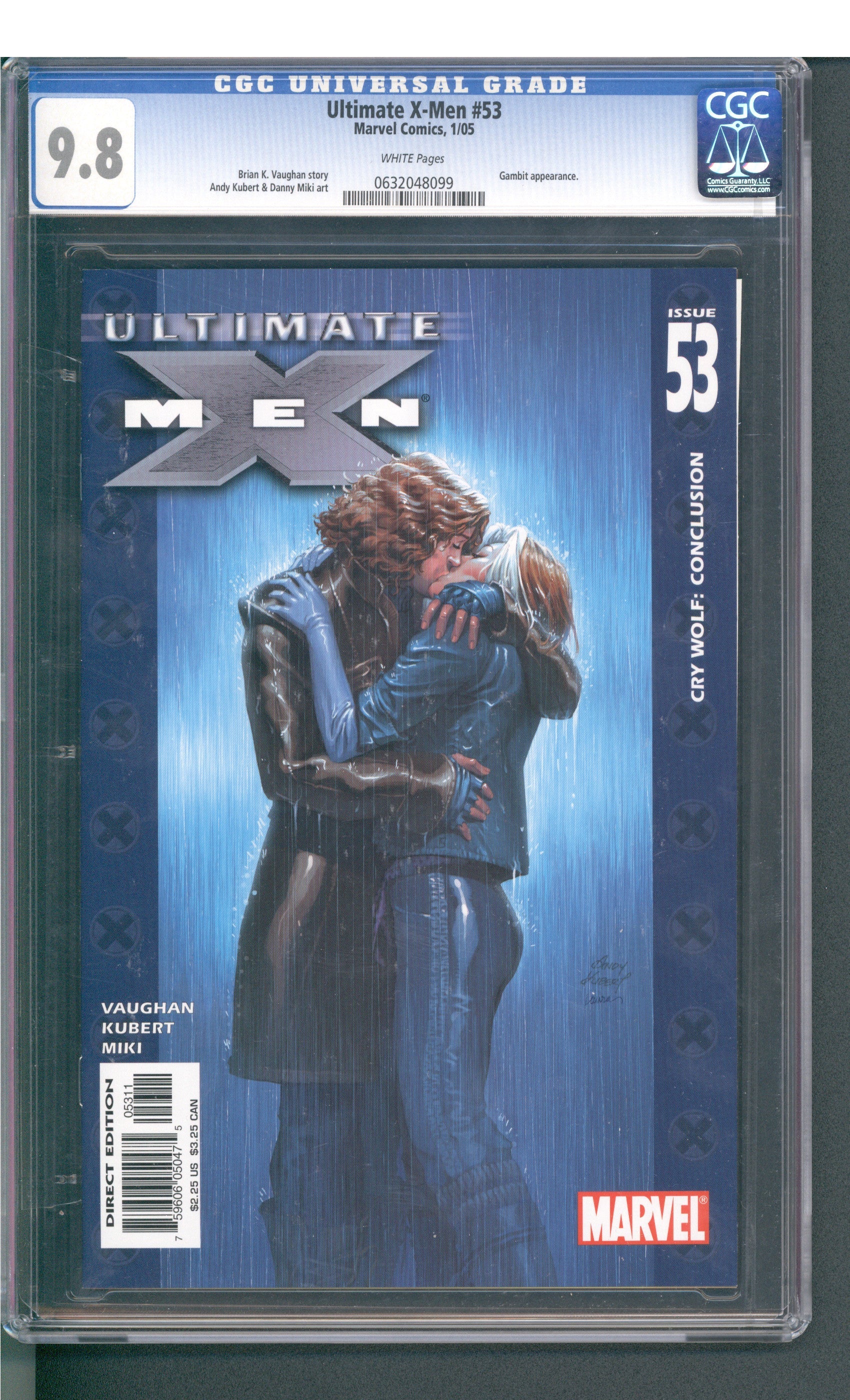 Ultimate X-Men #53 from 01/05 offers a glimpse into the era's iconic storytelling. Featuring gambit appearance., this issue is a must-have for collectors. Add this CGC 9.8 graded comic to your collection today!
