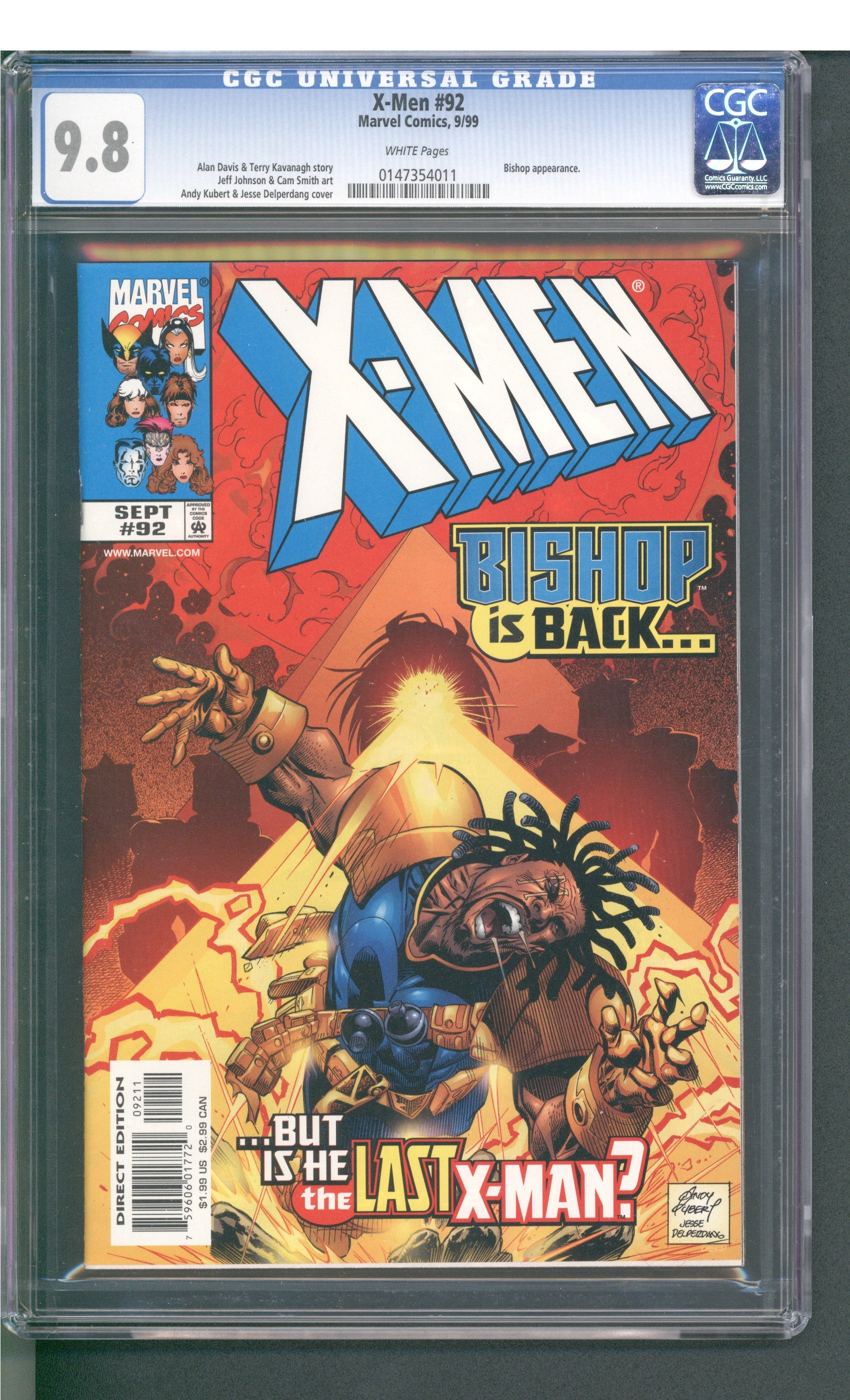 X-Men #92 from 9/99 offers a glimpse into the era's iconic storytelling. Featuring bishop appearance., direct editions include trading cards., this issue is a must-have for collectors. Add this CGC 9.8 graded comic to your collection today!